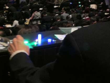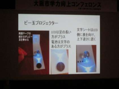 ご講演では、ユニークなお話や、今回のノーベル物理学賞に触れ、そして発光ダイオードを使った実験を提示して、参加者も各自実験にチャレンジしました。白熱球や蛍光灯とLEDの違い、光の七色、赤色・青色・緑色の光からできる白色など、次々に驚きが示され、なるほど、これは理科に関心を持つこと大だと、感心しました。