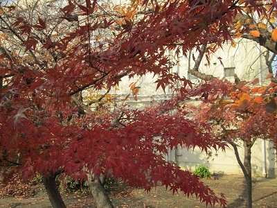 正門のもみじも、少し赤味をおびてきました。