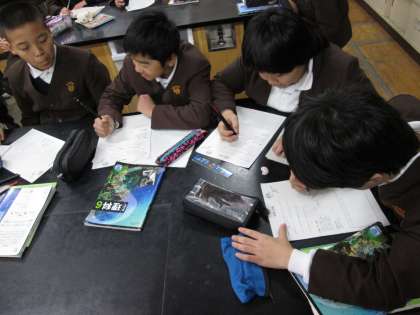 地球の直径や、月・太陽との比較などを、ワークシートを使いながら説明していきました。