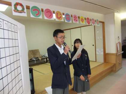 生徒会役員の司会で交流会は始まり、歌やクイズで盛り上がりました。