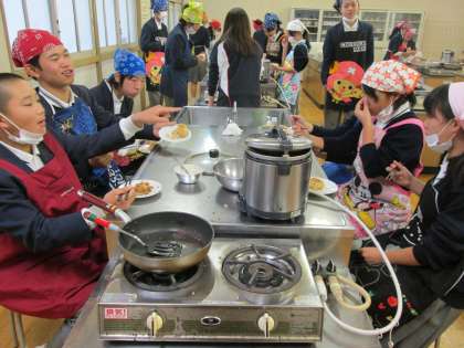 見てください。空腹を満たした時の笑顔! みんなで美味しくいただきました。