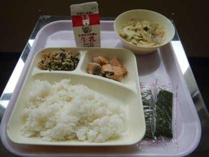 「高野どうふのいり煮」の「炒り煮」というのは、鍋に油を用いずに食材を入れて炒めて(炒って)から、または油をひいて食材を入れて炒めてから、出汁、醤油、砂糖、酒、みりんなどの調味料を加えて煮る調理法です。炒って食材の水分を飛ばすことで旨味が凝縮される上、調味料や出汁などを入れて煮た時により味が浸みこみやすくなるのです。給食では、綿実油をひいて炒っています。