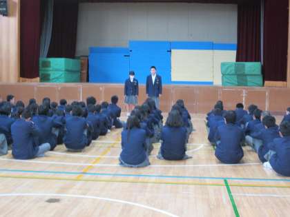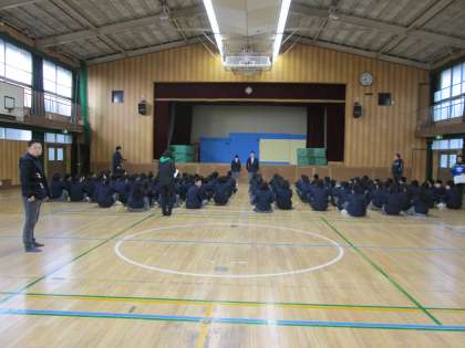 底冷えの体育館 2年 学年集会