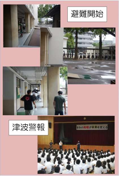 その後、「津波警報」が発令したことを想定して、全生徒は校舎4階に移動しました。