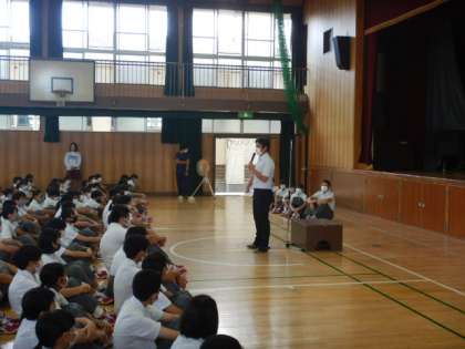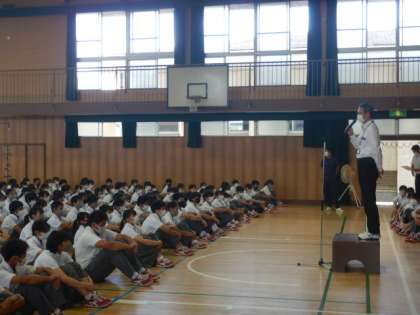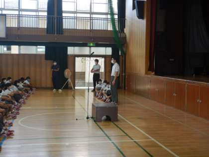 今朝の全校集会では、校長先生からは「正解のない問いに答えを出す力」についてのお話がありました。生徒会長からは今週の予定の連絡があり、最後に生徒指導主事の先生からは部活動の鍵についての連絡や、好き嫌いなく給食を食べようというお話がありました。