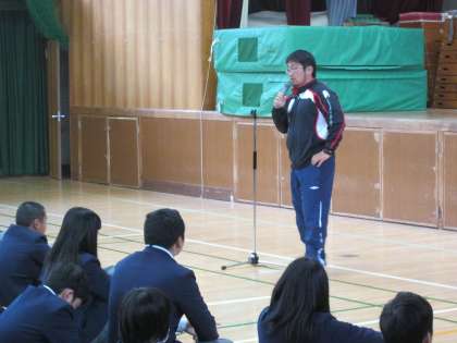 生徒指導主事より、冬休みの諸注意について、お話がありました。