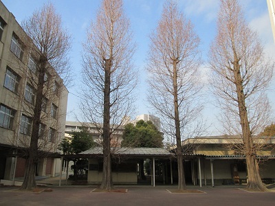 正門付近も、木々の葉が少なくなり、淋しげです。