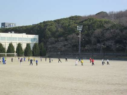 千島グラウンド。サッカークラブの稽古始めのようです。
