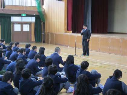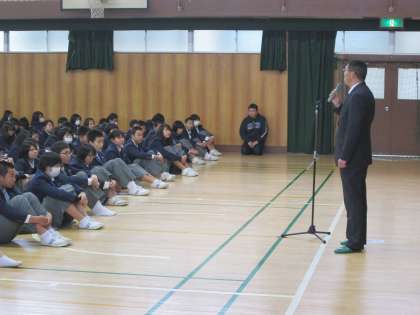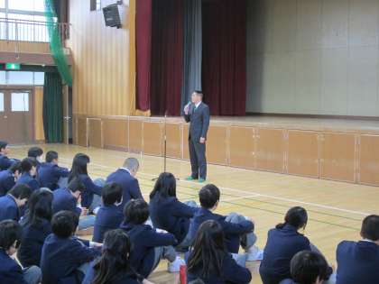 生徒指導主事から、冬休みの報告と諸注意、今後に向けて。