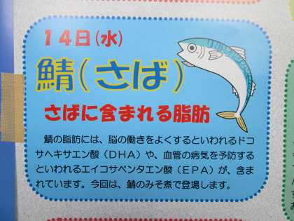 本日のメニュー。メインは鯖の味噌煮です。