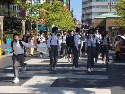全班天王寺動物園を出発し、各班で帰ってきています。