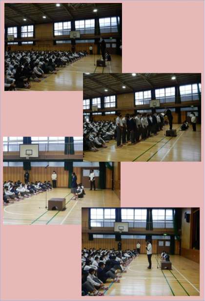 生徒会役員からは今週の予定の連絡があり、生徒指導主事の先生からは給食の食缶返却の動線についての再確認と、昼休みの過ごし方についてのお話がありました。