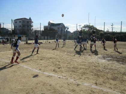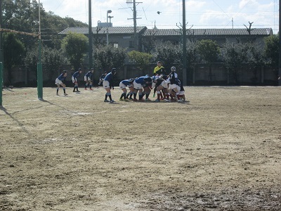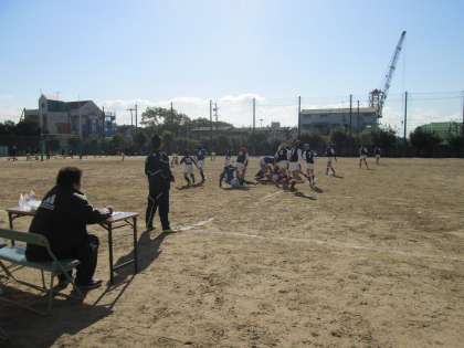 キックオフから、いきなりトライを決められ、劣勢に立ちますが、すぐに相手の反則からチャンスが! ベンチも沸き立ちます。