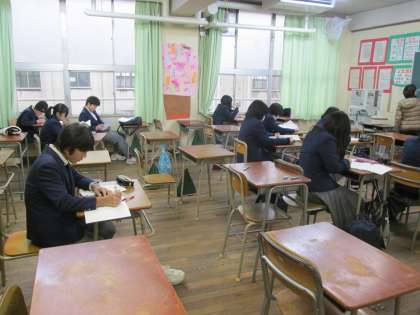 学年末テスト2日目。3年生は早くから登校し、テスト勉強に励んでいます。
