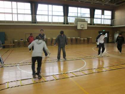 ラダーとは、中学校の運動部でよく使用しますが、一辺50センチの正方形が19並ぶ梯子状のトレーニング用具の名前です。