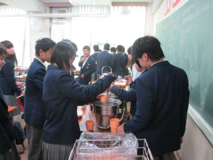 2月からの給食は、温かい食缶の提供が、月・水・金の週3日間の提供となりました。1年の先生方も、より忙しくなります。