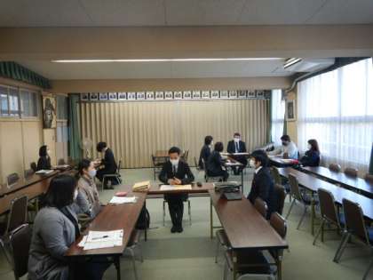 授業後は多目的室で研究協議会を行いました。当初は全教員参加で実施する予定でしたが、大阪がコロナのレッドステージとなったため、当該教科と指導主事の先生による少人数での研究協議会となりました。