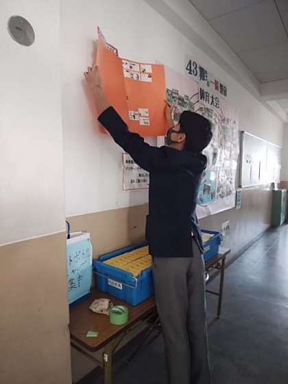 プリントアウトしたものを廊下に掲示するのに快く手伝ってくれました。