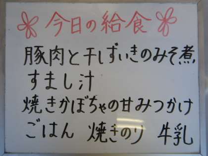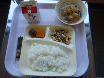 今日の給食の食材には「ん」の付く物が、「なんきん(かぼちゃ)」、「だいこん」、「にんじん」の3つありました。