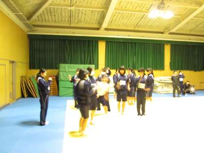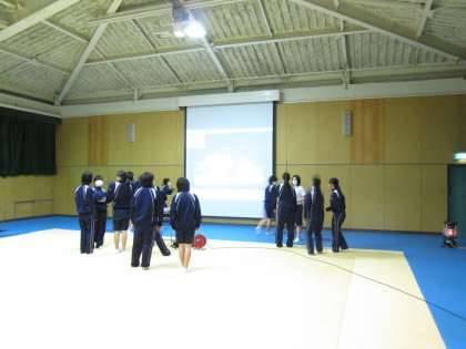 ダンスの授業。DVD映像を参考にして、派手な動きのダンスに全員がチャレンジします。