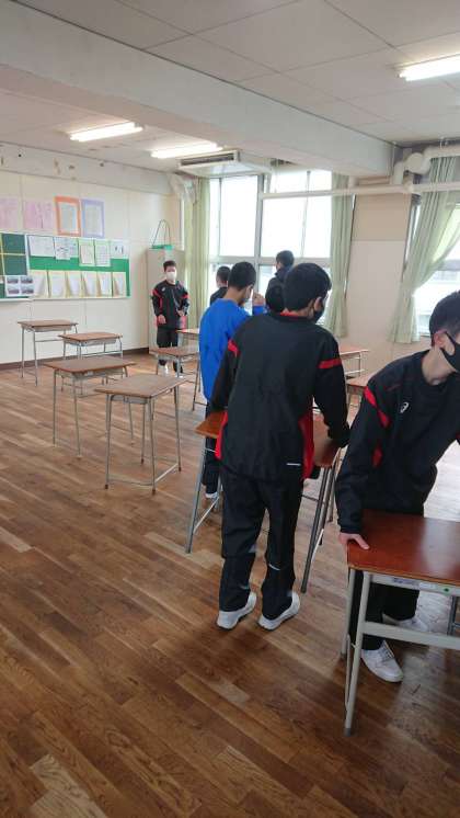 年末に教室の油引きをしてくれた時に廊下に出していた机椅子を男子バレーボール部が教室に入れてくれました。