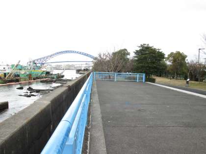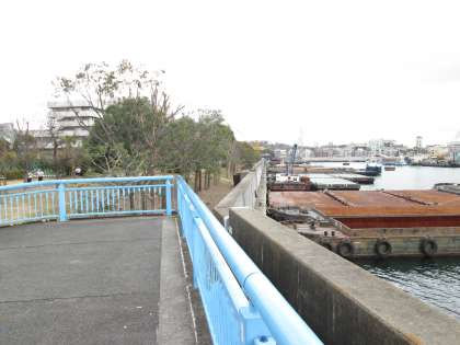 コースを走ると、左手には大正内港や千歳橋が見えます。