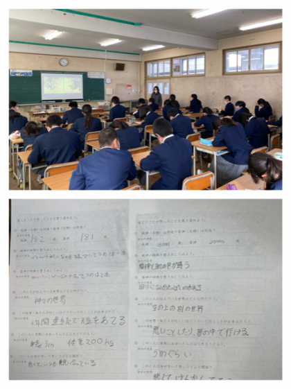 美術(1-4)…風神雷神図の鑑賞をしています(美術室)
