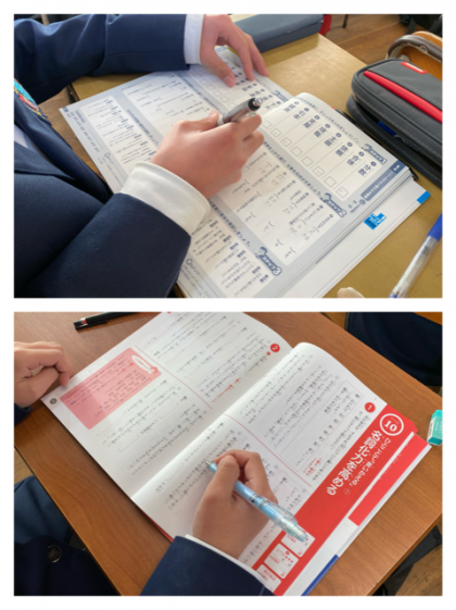 テキストを使い、語彙力と読解力の向上を目指しています。