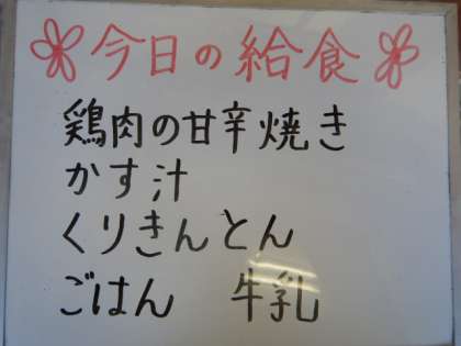 「栗きんとん」はおせち料理の定番でもありますが、栗だけでつくることはほとんどありません。最も一般的なものは、「栗」と「サツマイモ」を使って作ります。(今日の給食もそうです)
