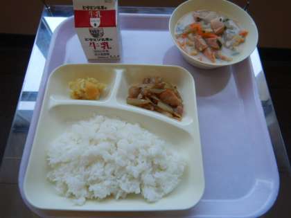 今日から3年生は学年末テストのため、給食は1,2年生だけです。