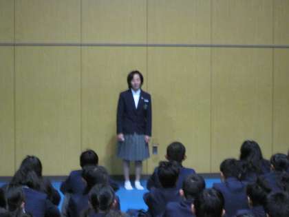 代表生徒から、先日行われた的場先生の講話について、感動の感想が述べられました。