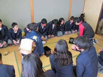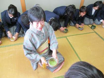 茶筅の使い方を教えていただき、何人もの生徒がほめていただきました。