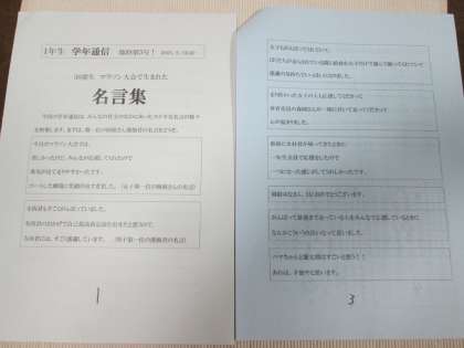 学年で、それを「名言集」として、まとめられました。