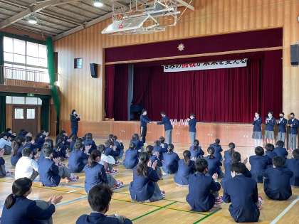 先週の金曜日の学年集会で、1月29日に実施したマラソン大会の表彰式を行いました。