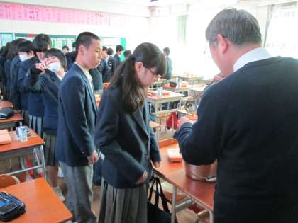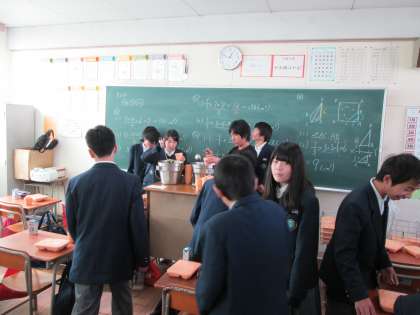 味噌汁をカップに入れるのが、なかなか小さくて難しく、ほとんど担任の先生が汗をかきながら・・・。