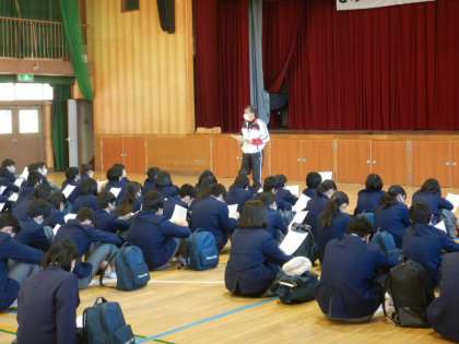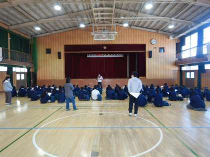 本日6限目、体育館において公立高校一般選抜を受検する生徒を対象に出願の事前指導を行いました。