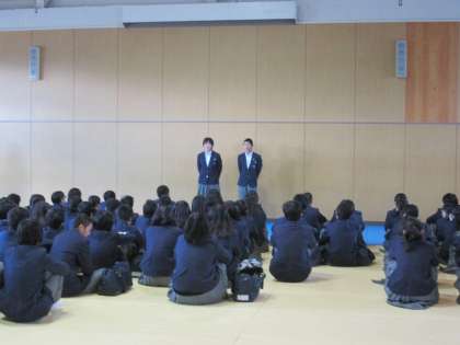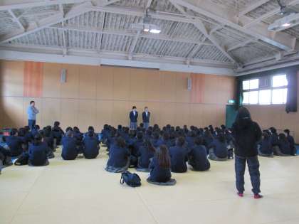 本日の集会は、遅れてきた人が目立ちました。木曜日は学年集会の日。早起きに心がけてください。