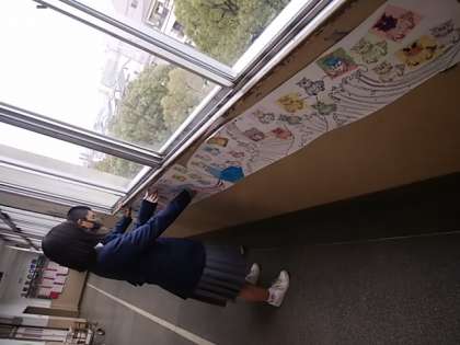 放課後に班長さんがサンクスカードを貼った波を廊下に貼ってくれました。