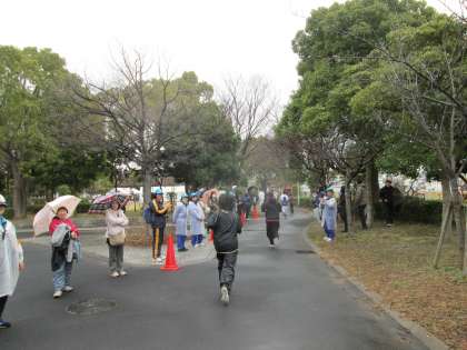 沿道はすごい声援です。何だか、とても恥ずかしいです。