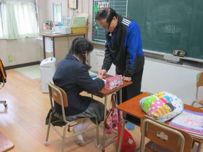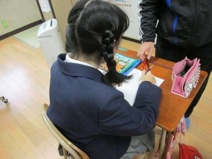 わかば学級では、1年の女子生徒が必死で頑張っています。