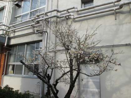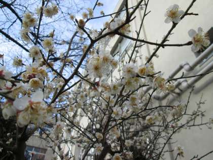 本校の、玄関横の白梅。