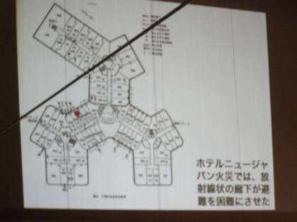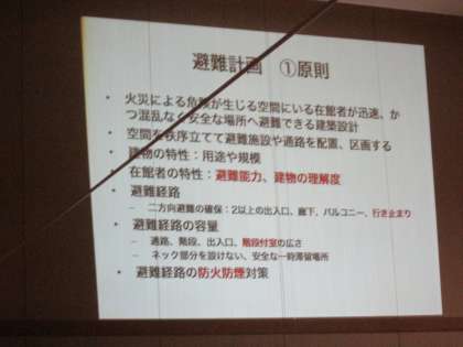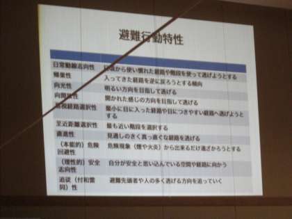 日本で起こったホテルの大火災を例に、避難について、避難経路の確認の大切さや、人間の行動パターンについて、詳しくお話をいただきました。