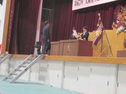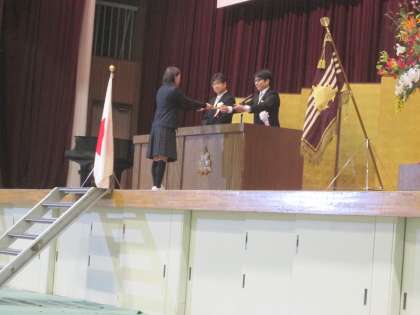 代表生徒が壇上に上がり、卒業証書を授与されました。