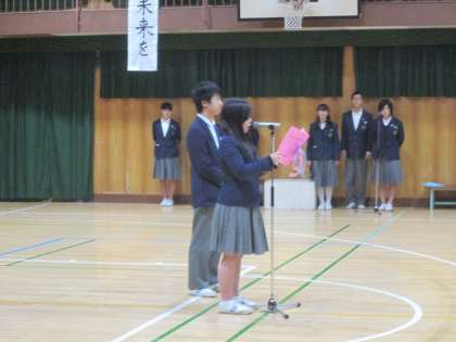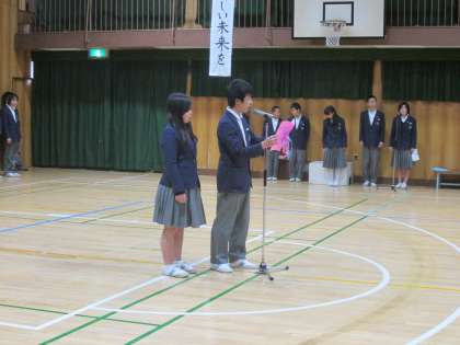 学年を代表して、生徒会で頑張った小林君と平良さんが読み上げてくれました。