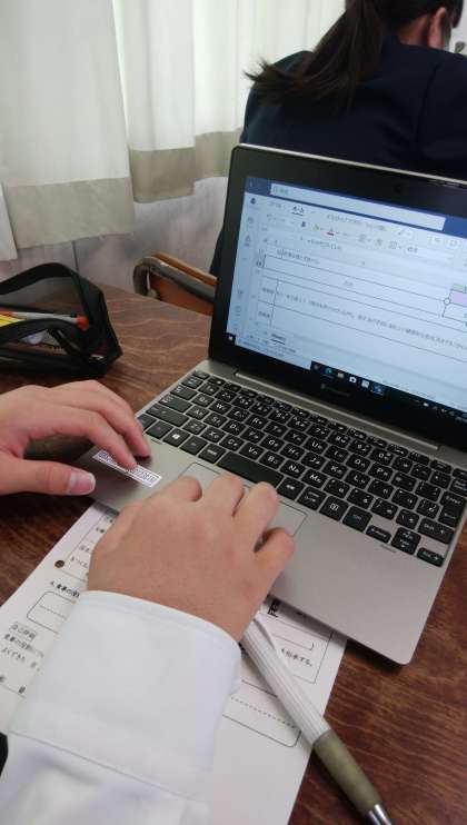 タブレットの使い方に慣れない生徒もいましたが、数字を入れ、自分の今の食生活を振り返ることができていました。