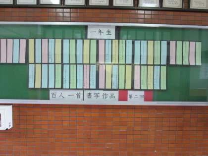 玄関の掲示板。百人一首がパート2に変わりました。