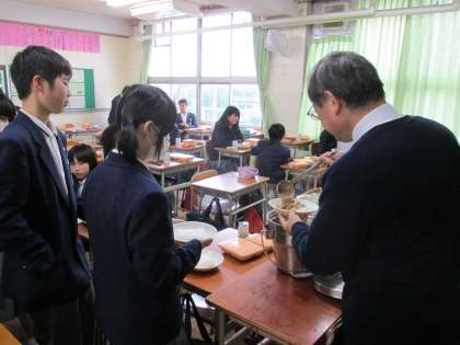 1年では、今日もあわただしく、先生方がカレーの盛り付けになどに、忙しくされています。