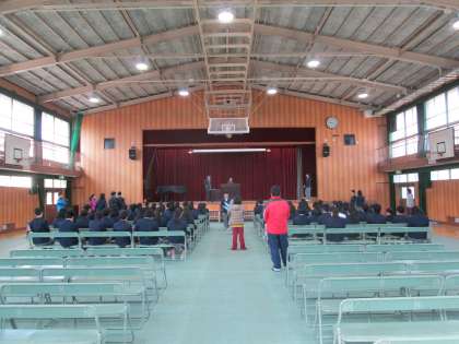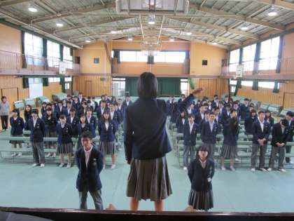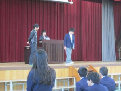 午前中、3年生が明日の予行に備えて、練習をしています。