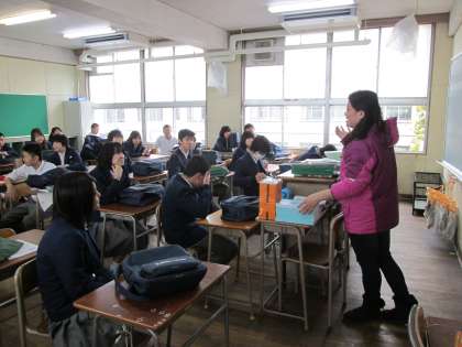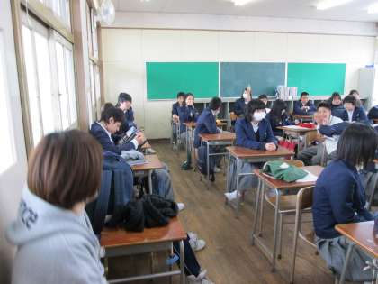 3年2組 最終の学活です。お別れの講話。担任の先生から、プライベートの重大なことが・・・?