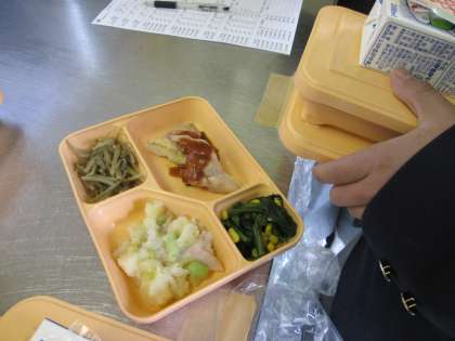 ごぼうのサラダには、袋入りマヨネーズがついていました。とても懐かしいです。